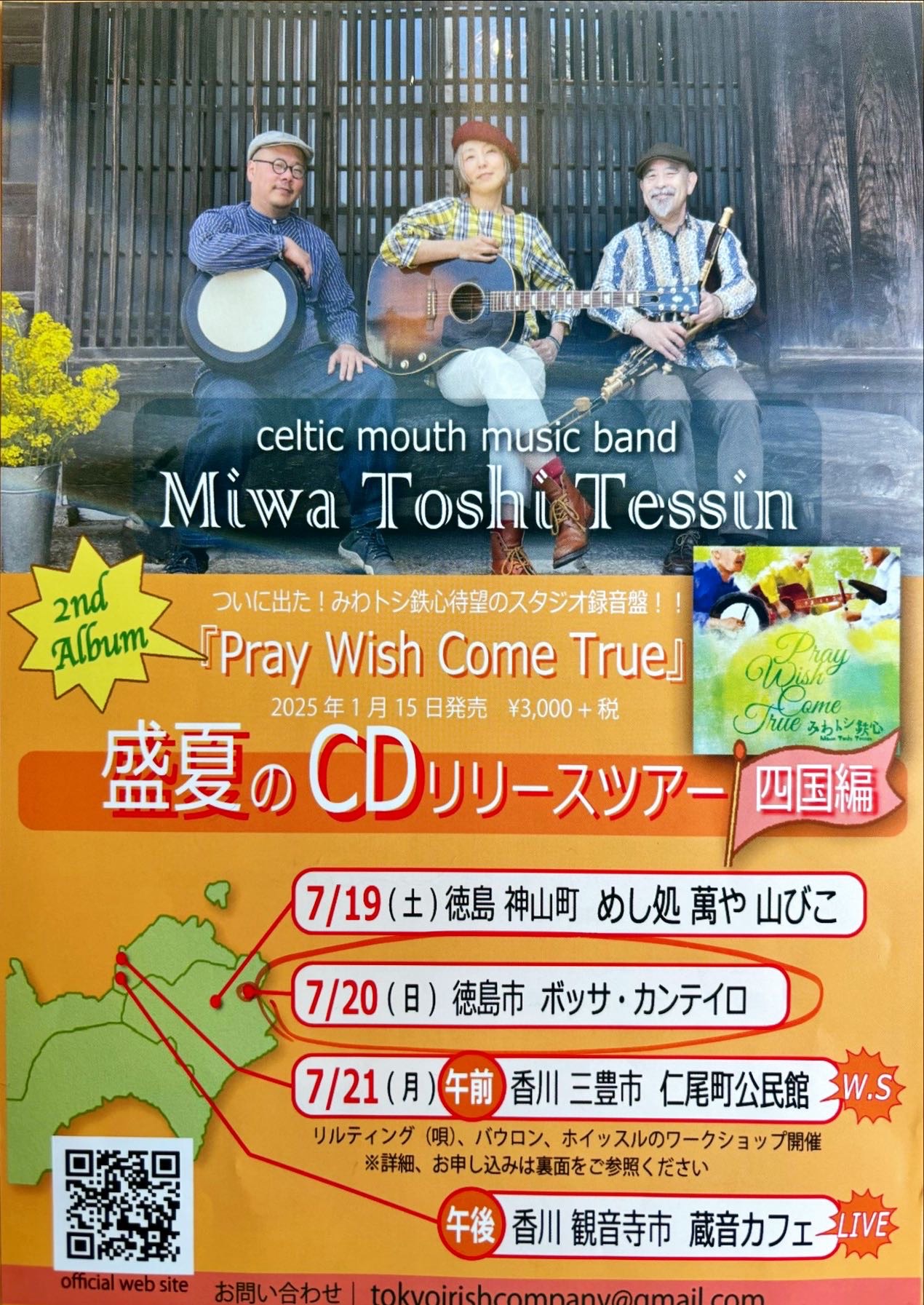 盛夏のCDリリースツアー 四国編 カテゴリ: 音楽 盛夏のCDリリースツアー 四国編 概要 チケット 金額 3,500円 時間 7月20日(日)18:30開場 19:00開演 出演 みわ、とし、てっしん お問い合わせ ボッサカンテイロ 088-642ー4288 日時 2025年 7月 20日 18:30 日付: 2025/07/20 6:30 PM 会場: ボッサカンテイロ カテゴリ: 音楽 地図 779-3117 徳島県徳島市国府町日開371-2 ボッサカンテイロ
