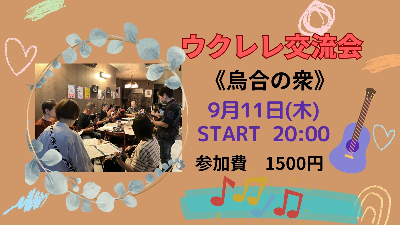 初心者の方には、コードの押さえ方や弾き方を基礎から丁寧にレクチャーいたしますので、この機会にぜひお気軽にご参加ください。