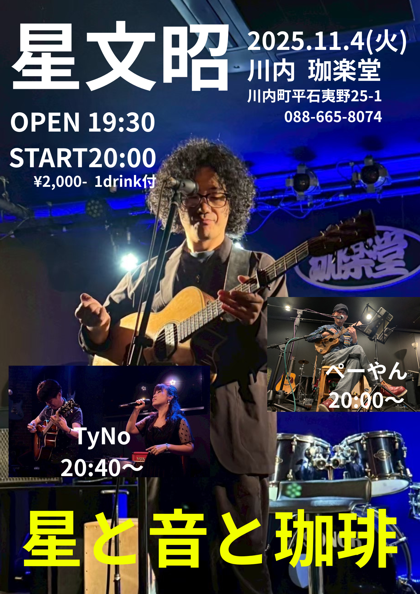 珈楽堂に星文昭くんがまたまたやって来てくれます!!