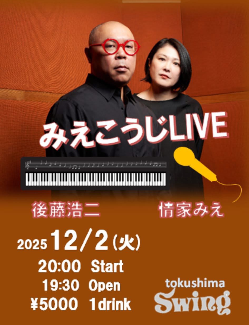 みえこうじLIVE カテゴリ: 音楽 みえこうじLIVE 概要 日時 2025年 12月 2日 20:00 日付: 2025/12/02 8:00 PM 会場: Swing カテゴリ: 音楽 会場 swing 地図 770-0934 徳島県徳島市秋田町2-36 Swing