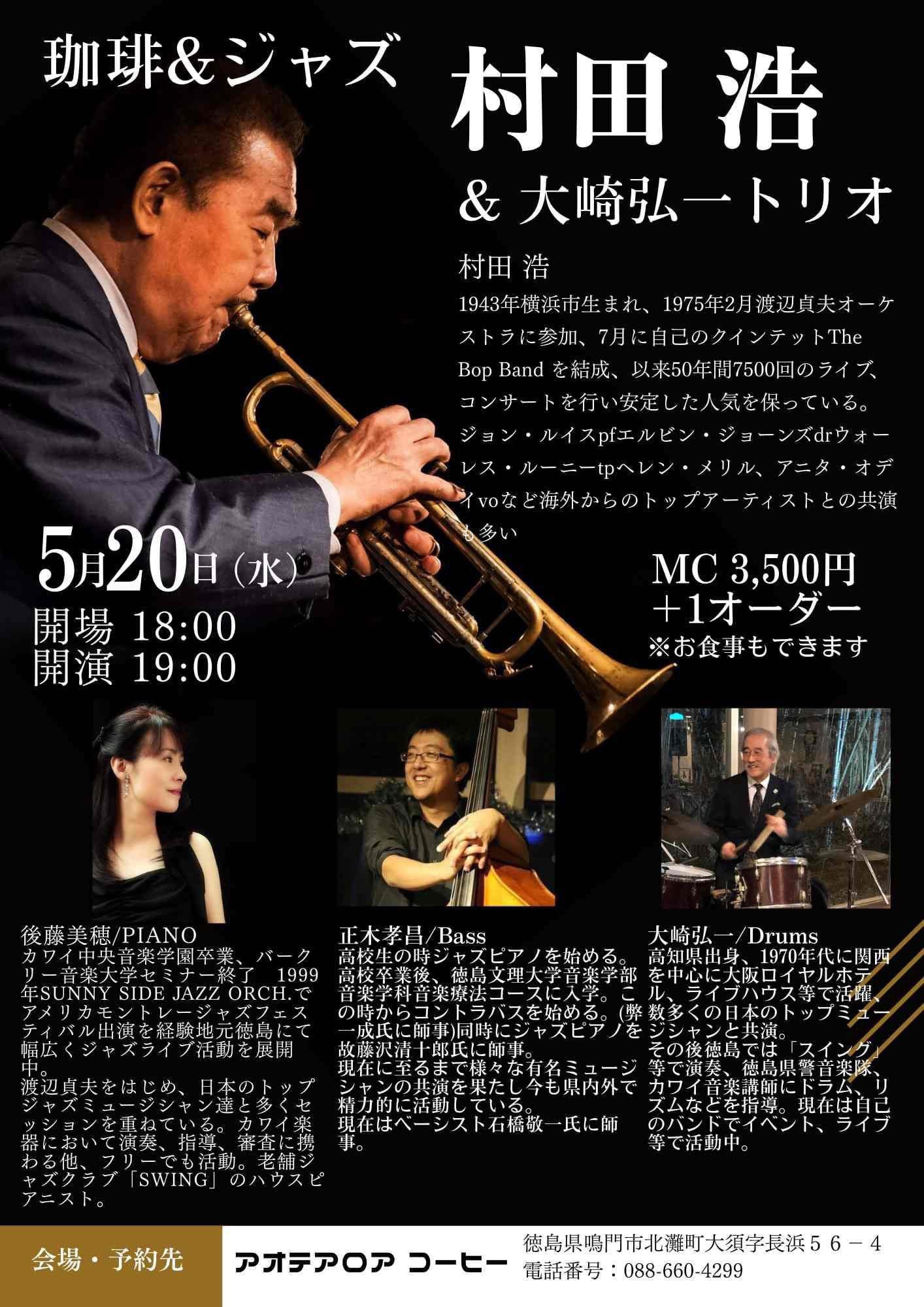 珈琲&ジャズ 村田浩&大崎弘一トリオ カテゴリ: 音楽 珈琲&ジャズ 村田浩&大崎弘一トリオ 概要 日時 2026年 5月 20日 19:00 日付: 2026/05/20 7:00 PM カテゴリ: 音楽 お問い合わせ先 088-660-4299