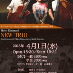 金森もとい NEW トリオ ジャズベースのヴァーチオーゾ金森もといが“素敵なスタンダードをただ素敵にお送りする至高の一夜”!! 開場18:30 開演19:30 MC 一般 4500円 学生 3000円 (ドリンク別途) […]
